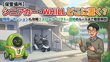 レンタル・購入ガイド 【保管場所】階段・マンションも攻略!シニアカー・WHILLをどこに置く?スロープ・リフト・団地のルールまで徹底解説 シニアカー・WHILLの保管場所、階段やマンションでの置き方に悩んでいませんか?この記事では、スロープ、リフト、屋外保管、団地のルールなど、住環境に合わせた解決策を徹底解説。購入前の不安を解消し、最適な機種選びをサポートします。 2025.12.05 レンタル・購入ガイド