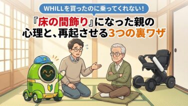 シニアカー・WHILL WHILLを買ったのに乗ってくれない!「床の間飾り」になった親の心理と、再起させる3つの裏ワザ WHILLを贈ったのに親が乗ってくれないと悩んでいませんか?「床の間飾り」になってしまう親の心理を解き明かし、孫との散歩や美味しい目的地など、WHILLに乗るきっかけを作る3つの裏ワザを解説。 2025.12.18 シニアカー・WHILL